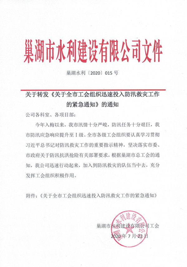 受持續強降雨和江水頂托影響,巢湖及各支流水位全面超警且居高不下,防汛形勢極其嚴峻。巢湖市防汛抗旱指揮部決定將防汛應急響應提升至Ⅰ級。