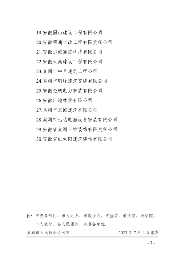 巢湖市人民政府關于表揚2022年度巢湖市建筑業企業30強的通報