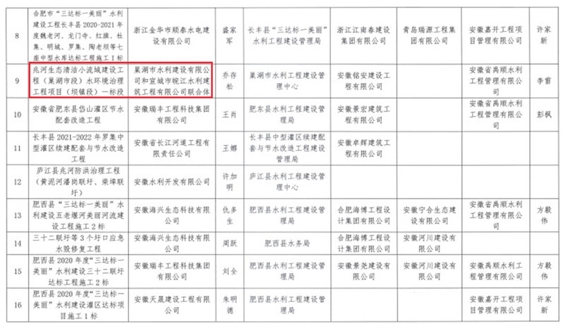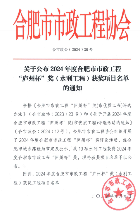關于公布2024年度合肥市市政工程“廬州杯”獎(水利工程)獲獎項目名單的通知